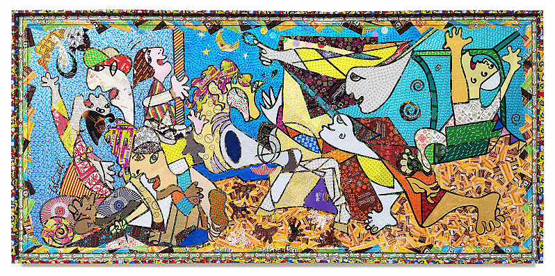 This work is an interview of the Picasso Guernica painting describing the horrors of war at that time... This work discusses the Guernica with hope and deep faith in the Lord, glory be to Him. This work tells about the joy of Eid, and we call the smaller feast after the end of the month of fasting, and it is called the smallest because after several months, the biggest feast comes after Hajj... On Eid al-Fitr, a state of happiness becomes overwhelming, as everyone awaits the crescent 'moon at the end of the month' after we were waiting. The sound of the breakfast cannon is the sound that is associated with the breakfast of the fasting people, and our souls are associated with it, and when we see the crescent moon then only everyone wears their finest clothes, rich and poor alike, and they gather to do the Eid prayer. Beauty surrounds us at that time from everywhere. Everyone is happy and children run in joy in new clothes and families gather to eat. The first breakfast after the month of fasting, children play, and visits between relatives begin... Sweets are served. Sweets are associated with this holy feast... The smaller feast embodies joy in all its forms.