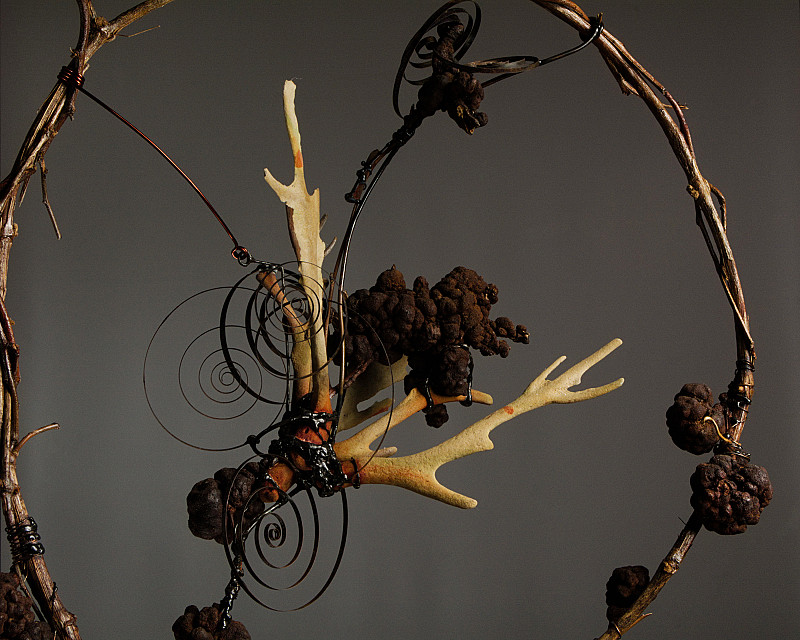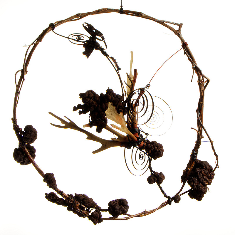 Found objects, clock parts, Antler Sea Trees, Port Jackson growth on vines, copper, lead and pewter solder