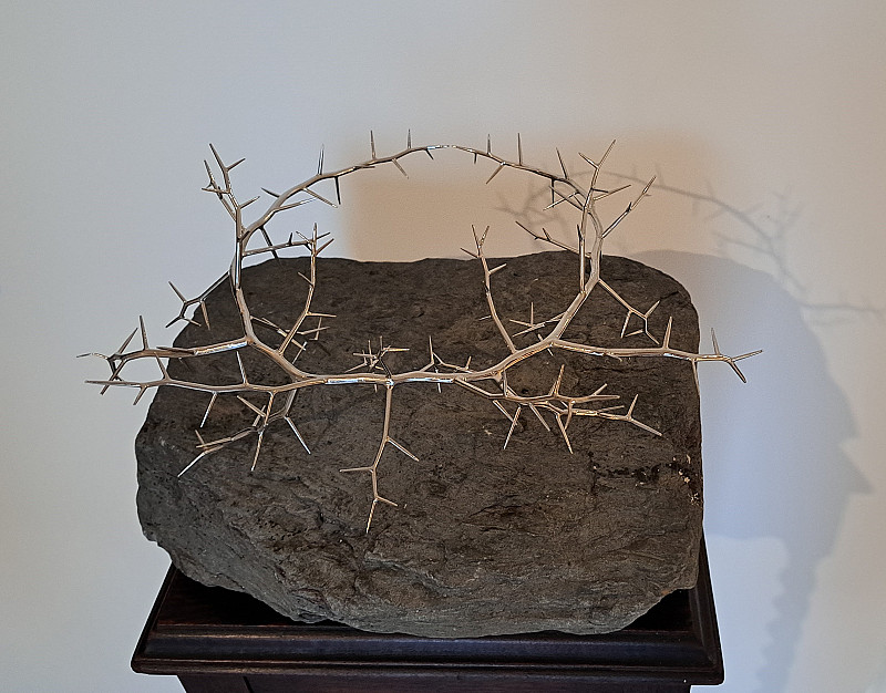 "The thorns of this crown are constructed from shaped steel nails, and the crown plated in bronze.