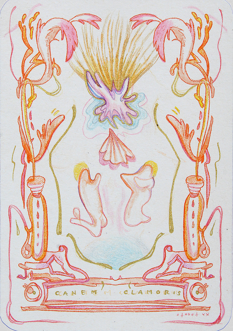 Mogen honden om u huilen (May hounds cry for you) (Prayers to swallow Series), Octavia Roodt , Screen print on Stephen 370GSM paper, colour pencil and gold ink