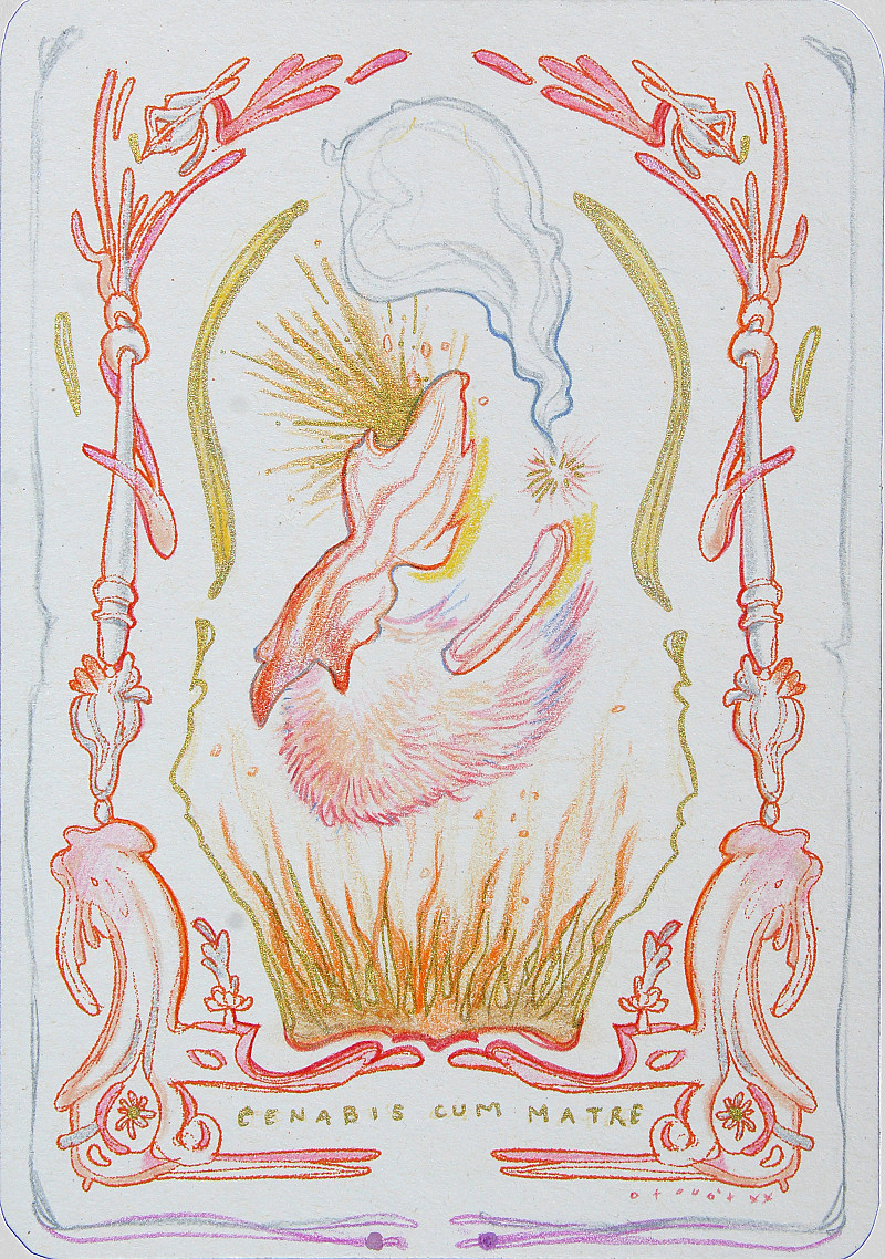 Que la Mère dîne avec vous (May the Mother dine with you) (Prayers to swallow Series), Octavia Roodt , Screen print on Stephen 370GSM paper, colour pencil and gold ink