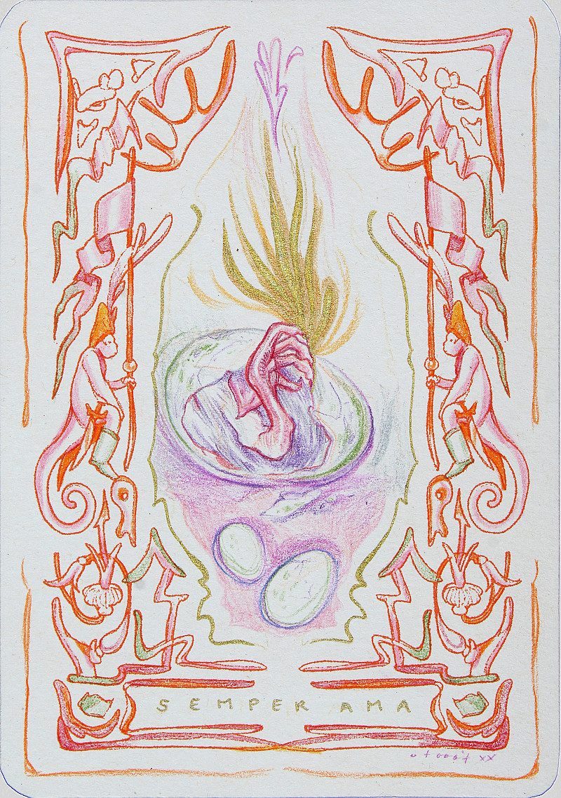 Que les tiennes durent toujours (May it last forever) (Prayers to swallow Series), Octavia Roodt , Screen print on Stephen 370GSM paper, colour pencil and gold ink