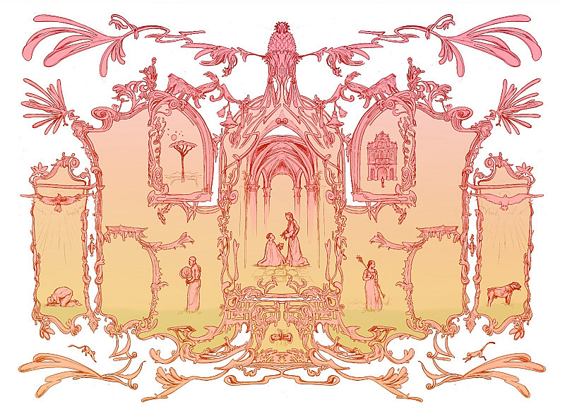 The experience of the outsider entering the Catholic Cathedral is related to a specific piece of land in South Africa. A beloved Boerboel, the panel on the utmost right, has recently died. The patriarch of a Jewish family breaks bread in the heart of Antwerp. The Dutch royal family celebrates Keti Koti (breaking of the chains of Surinamese slaves) and officially apologises.