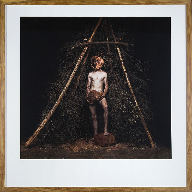 Titled after the Greek King 'Sisyphus' who was punished to endlessly roll a huge boulder up a steep hill only to find it rolling back upon nearing the top the artist seeks to comment on the endless struggle of life and all its challenges.