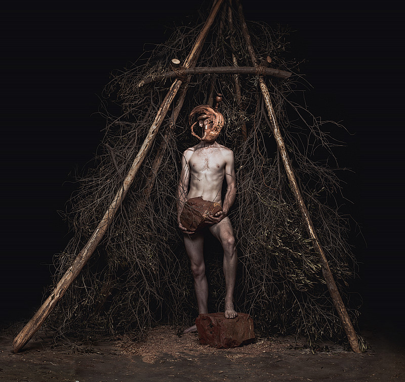 We all carry a burden whether large or small and we all fight tiny battles daily, sometimes victorious and sometimes not. Here in the image the subject seems triumphant over his burden, muscles straining under the weight of the rock he carries, but he nonetheless stands tall, victorious, if only for a moment.